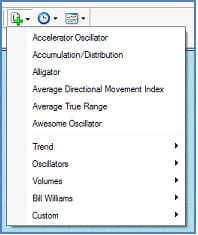 Technical analysis indicators can be added to any price chart to help you to spot opportunities when they arise. You can do this by clicking on the ‘Add Indicators’ icon in the top toolbar and selecting one from the drop-down list, or by clicking ‘Insert’ on the top toolbar and selecting ‘Indicators’. These indicators are grouped under menu categories such as volumes, trends, and oscillators. You can opt to use the default settings for that indicator, or you can change the inputs, such as moving average length. Once you have done this, the indicator will appear on the selected chart.