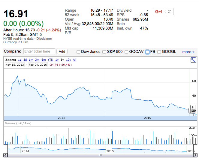 2015 was among the toughest yet for Twitter after a major shakeup on the executive level with Dick Costolo stepping away and Jack Dorsey filling the void. The reemergence of founder Jack Dorsey at the helm of Twitter has not done much to restore shareholder optimism as evidenced by the enduring carnage in the company’s valuation. More concerning than the founder being brought back to the helm after a disappointing stretch of execution failures is that Dorsey currently acts as CEO of another publicly listed company, payment technology provider Square (SQ:NYSE). At a time when both companies are unable to deliver profits and struggling to convey their vision to investors, Dorsey caught between two stools is a disaster waiting to happen.