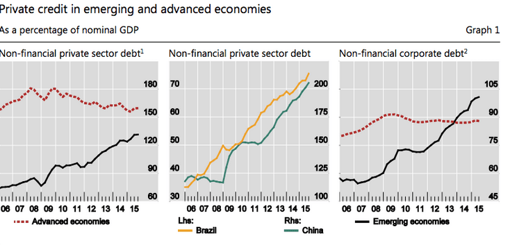 So in this scenario welcome back to a familiar anxiety: global debt contagion. As Bloomberg synthetises the fragile global economy has been straining under a record scary pile of debt. The world economy has continued to borrow hand over fist since the financial crisis, adding nearly $60 trillion since 2007 in the process of pushing the worldwide debt load to $200 trillion, or nearly three times the size of the entire global economy. And that figure takes us only to 2014; we don’t yet have fresh debt tallies from last year, special as the Chinese economy has been pushing these numbers to a new parallel dimension.