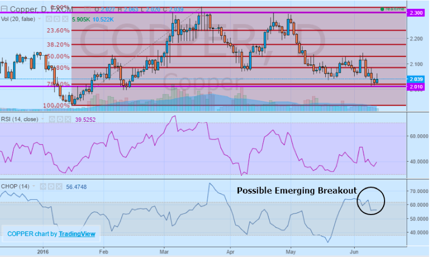 Even though copper is looking slightly oversold according to the Relative Strength Index, the Choppiness Index falling below the 62.80% level could indicate an early stage breakout to the downside. Looking at the actual Fibonacci Retracement levels from the January lows to the March highs shows that while a technical correction to the medium-term uptrend may be underway, the bounce off of 78.60% level is more indicative of a reversal than an uptrend momentum pullback. Typically, a correction would be reasonable between the 38.20% to 62.80% levels, in keeping with the standard 30.00-60.00% retracement that is a hallmark of technical analysis. However, this current move even deeper to the downside is highly indicative of a trend reversal and not a trend correction. Therefore, any break of key support at $2.010 could viewed as exceptionally bearish for copper.