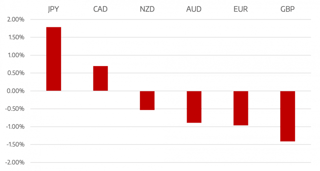 GBP was the worst performer despite UK economic data beating expectations. With no real leader for the UK government investor sentiment still remains poor and GBP struggled to find any level of support vs the US Dollar.