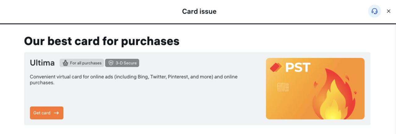 2. Activate Your Card: After registration, access your personal account to issue the Ultima card, which becomes active immediately. Simply click the “Get card” button.