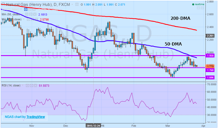 On a performance basis, natural gas remains mired in a bear market with prices falling over -38.62% on an annualized basis and -23.43% year-to-date alone. Now that many of the conditions that supported demand and prices over the last few months are about to absent considering improving weather conditions and rising domestic production, US natural gas prices are once again likely to tumble lower. From a technical perspective, natural gas prices are currently sitting at a very interesting potential pivot point and support at $1.760 per MMBtu. A break below this key level paves the way towards the latest 52-week lows at $1.606 reached earlier in the month, marking the lowest levels in over 17-years. In support of continued downward momentum in natural gas prices are both the medium and longer-term 50 and 200-day moving averages with both trending lower above current prices, acting as resistance to any sustained bounced in prices.