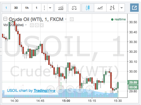West Texas Intermediate (WTI) for March delivery reached a session low of $29.57 a barrel in early morning trading. The US crude oil benchmark settled down 73 cents or 2.4% at $30.16 a barrel. International benchmark Brent crude fell 59 cents or 1.7% to $33.47 a barrel.