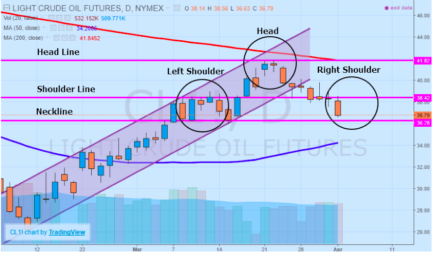 At present, price momentum lower is moving towards key support at $36.28 which coincides with an emerging head and shoulders bearish formation. The pattern, which has the neckline at $36.28, the shoulder line at $38.42 and head line at $41.82 traditionally is very bearish in nature. Right now, with the left shoulder and head completed, the key to trading the setup relies upon the formation of the right shoulder. Ideally, if prices rebound modestly from current levels, positions established near the right shoulder line would target the neckline. Any candlestick close below support at $36.28 indicates a completion of the pattern and a more pronounced likelihood of a bearish run towards the 50-day moving average and major support around $34.00 per barrel. However, if prices rise above the shoulder line it would suggest a breakdown in the pattern and a move back towards the key psychological $40.00 level.