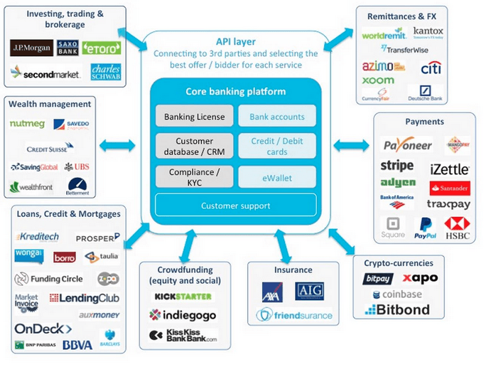 Fintech new trading platforms are becoming the center of the engine for traders, investors and the industry entities supporting, in which traders and masters can both benefit through networking and sharing of ideas and skills but also improve and explore better ways of working. Just see the bellow graphic to see all the areas going in the Fintech technological API connecting 3d parties services and finance solutions providers.