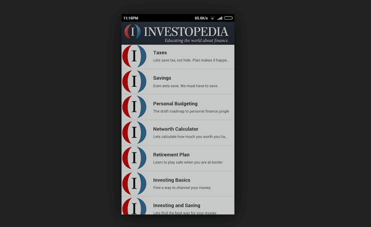Investopedia is one of the go-to places for anyone seeking knowledge about every type of trading. Full of the latest news, trading hints and tips and more, the website is a great source to train anyone new to trading. The app is full of all the same information and features, with the ability of using it on the move and away from an internet source.