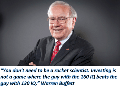 “You don’t need to be a rocket scientist. Investing is not a game where the guy with the 160 IQ beats the guy with 130 IQ.” Warren Buffett
